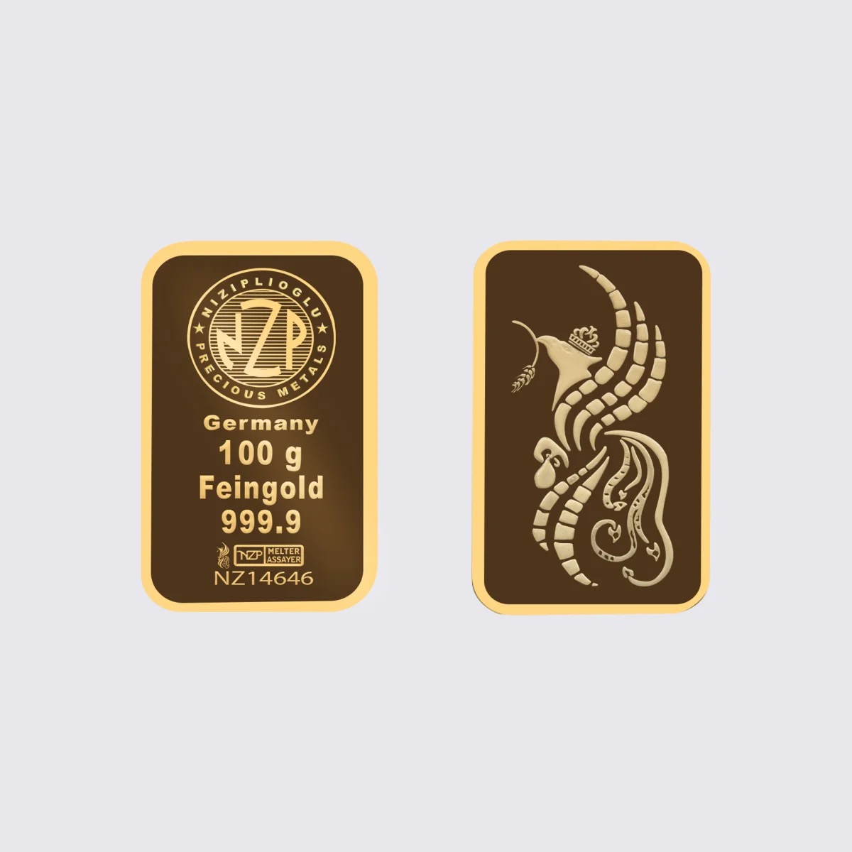 Jeder Barren wird aus „999,9“ Feingold hergestellt und trägt den offiziellen Prägestempel von NZP Gold Germany als Garant für Echtheit und Herkunft. Der 100 g Goldbarren ist eine klassische Wahl für Anleger, die Wert auf Flexibilität, Qualität und nachhaltige Wertanlage legen.