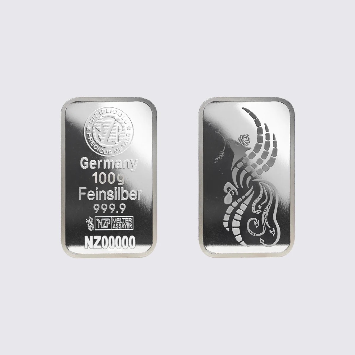 Jeder Barren wird aus „999“ Feinsilber hergestellt und trägt den offiziellen Prägestempel von NZP Gold Germany als Garant für Echtheit und Herkunft. Mit seinem ausgewogenen Format ist der 100 g Barren ideal für Anleger, die Wert auf Qualität und Handlichkeit legen.