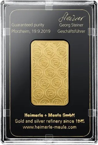 Heimerle + Meule wurde 1845 in Pforzheim gegründet und ist die älteste Gold- und Silberscheideanstalt Deutschlands. Das Traditionsunternehmen steht für höchste Verarbeitungsqualität, Präzision und zertifizierte Edelmetallstandards. Als LBMA „Good Delivery Refiner“ verarbeitet Heimerle + Meule überwiegend recycelte Edelmetalle und fertigt Investmentbarren mit einer Feinheit von „999,9“, die international anerkannt und ohne Abschläge handelbar sind.