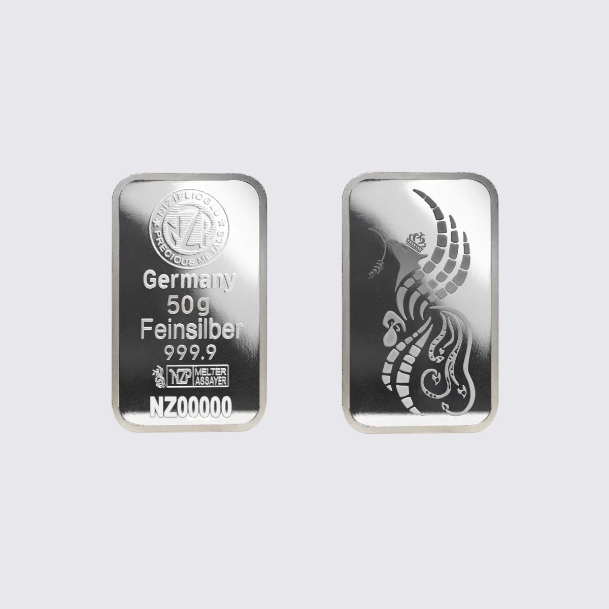 Jeder Barren wird aus „999“ Feinsilber hergestellt und trägt den offiziellen Prägestempel von NZP Gold Germany als Garant für Echtheit und Herkunft. Der 50 g Silberbarren bietet eine attraktive Möglichkeit, in echtes Silber zu investieren, und eignet sich ebenso als Geschenk oder Sammlerstück.